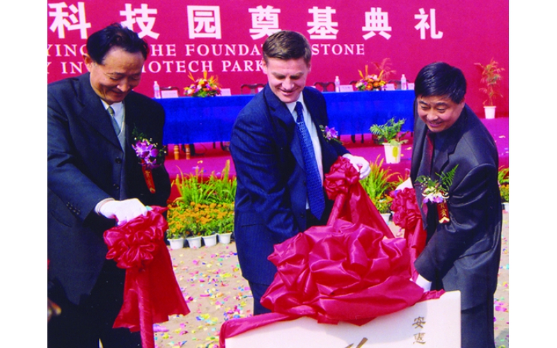 2002年10月24日“安惠國際生物科技園”奠基,參加奠基典禮的有新西蘭國家黨主席英格里希及他所率領(lǐng)的政府代表團(tuán)和科技代表團(tuán),南通市委、市政府領(lǐng)導(dǎo)和有關(guān)專家學(xué)者計200多人。