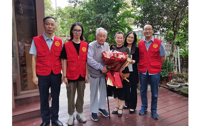 2022年9月23日,秋風(fēng)習(xí)習(xí),重陽(yáng)將至。安惠公司副董事長(zhǎng)陸漢萍和南通開(kāi)發(fā)區(qū)江海志愿總站站長(zhǎng)姚衛(wèi)民一行來(lái)到期頤老人石超家中,提前送去節(jié)日的問(wèn)候。