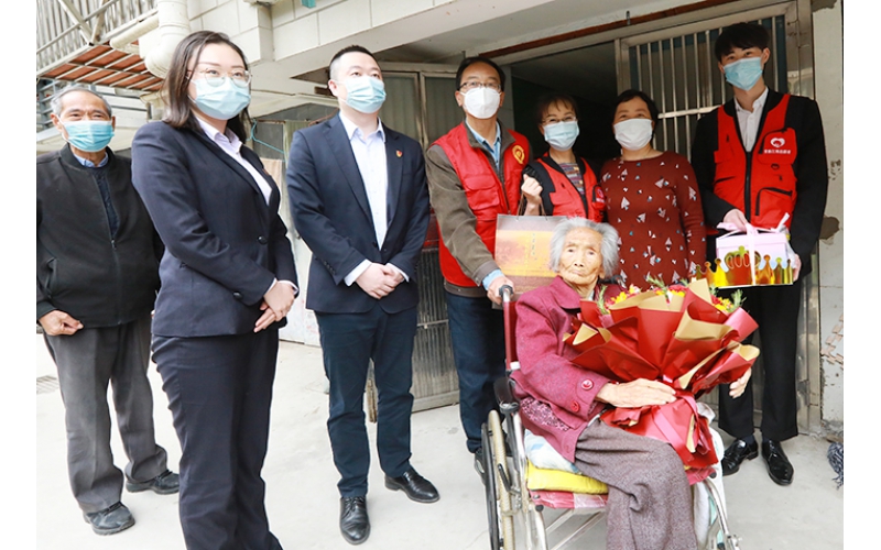 2022年5月10日,安惠江海志愿者代表與“期頤(百歲)老人慰問及志愿服務”項目的其他組織志愿者一同來到開發(fā)區(qū)小海鎮(zhèn)星嘉、星景兩個社區(qū),慰問在本月過生日的兩位102歲高齡老人。安惠公司副董事長陸漢萍為老人們送上芝草玉液酒、木耳、香菇等慰問品,并與老人親切交談,希望老人們保重身體,保持心情愉悅,約定明年再來看望。兩位老人對愛心志愿者給予的關心表示感謝。